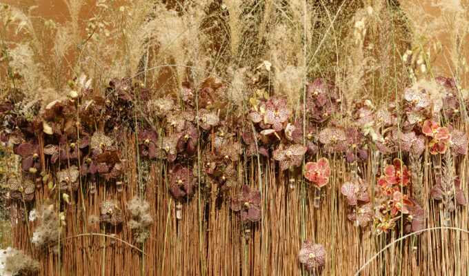 A Chaumont-sur-Loire, un événement chasse l’autre. Alors que l’on peut encore visiter le Festival international des jardins (Biomimétisme au jardin, jusqu’au 7 novembre), et avant L’art de recevoir au temps des Broglie (16 octobre) et Chaumont-photo-sur-Loire (20 novembre), le domaine propose un événement consacré à l’art floral, magnifique autant qu’éphémère. Pour cette troisième édition de la manifestation, de grands artistes décorateurs du végétal français et étrangers ont investi les pièces du château qui leur ont été attribuées. Parmi eux, plusieurs Meilleurs ouvriers de France, dont Charline Pritscaloff, seule femme de l’édition. La fleuriste orléanaise a imaginé un poulpe fait de branches d’orchidée, de clématis et asparagus teinté,… descendant par la cheminée de la chambre dite de Ruggieri, une vision onirique rehaussant la couleur de la cheminée.