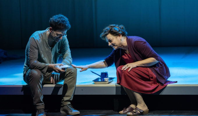Passionnante et étonnante démonstration, adossée donc à des lignes mathématiques, et formidablement maitrisée. Suivant les jours d’une semaine, allant de l’enfance à la vieillesse, Mouawad accompagne ses personnages sans perdre jamais (ou à peine, et pour mieux le retrouver) le spectateur. L’auteur et Jérôme Kircher interprètent les différents Talyani : le premier, plus empathique avec ses personnages, le second impressionnant dans des rôles ingrats, retors, difficiles. A les voir cheminer en parallèle, l’effet est garanti. A la mise en scène, Mouawad fait preuve d’une grande habileté, aidée en cela par la scénographie d’Emmanuel Clolus glissant d’un continent à l’autre. Hormis Norah Krief et Raphaël Weinstock, les autres comédiens interprètent plusieurs personnages. Parmi eux, Jérémie Galiana retient particulièrement l’attention, et aussi Richard Thériault, Jade Fortineau, mais tous, comme les membres de la Jeune Troupe, sont à saluer. Le temps de ces différentes explorations de vie, l’auteur évoque, en supplément, et survole les préoccupations actuelles : écologie, peine de mort, violences faites aux femmes, fin de vie… Découpé en trois parties, le spectacle d’une durée de 6 heures peut être vu en intégrale ou en deux soirées. D’une façon ou d’une autre, comme pour un feuilleton, ou une série bien ficelée, on a envie de connaître la suite, savoir ce qui va se passer dans ces déroulés de vies. Tout le talent de Mouawad pour raconter des histoires est dans ce souffle-là.