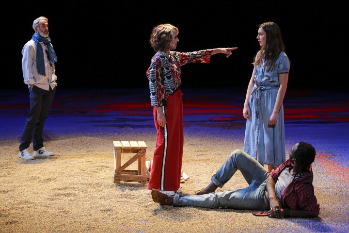 Grand connaisseur de l’œuvre de Claudel, le directeur du TNP s’attache à faire entendre la prosodie des vers, matière première vivante de la pièce. Dans l’épure de sa mise en scène, la langue claudélienne révèle sa pureté, ses chatoiements, ses flamboyances sauvages. Peu d’effets sur le plateau nu, si ce n’est, d’entrée, une pluie soudaine de sable rouge qui va délimiter le lieu de l’action, une terre sauvage où vont s’exalter les passions soudaines, s’opérer les calculs et les revirements.