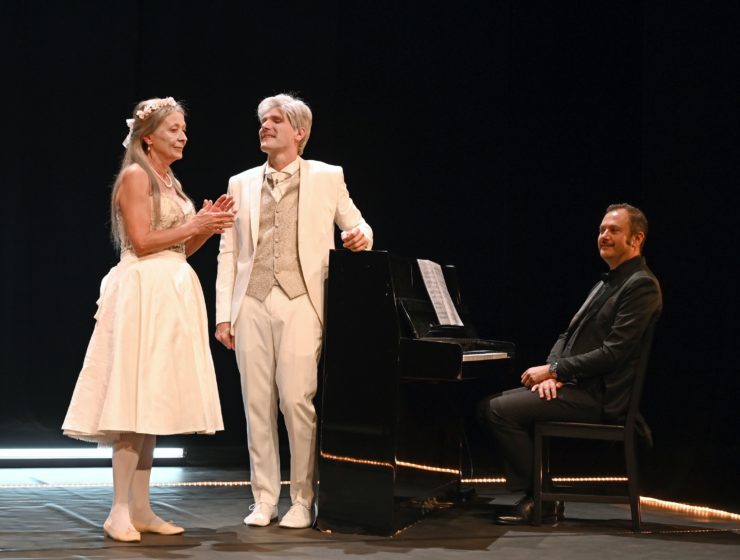 L’adresse, 21 rue des Sources, est celle où Philippe Minyana a passé son enfance, une grande maison de Franche-Comté qui abritait aussi une épicerie. La pièce évoque les aïeux et signe, en creux, le portrait de sa mère disparue. La simplicité de son écriture s’accorde au ton faussement décontracté du jeu des comédiens. Bridant la nostalgie, avec un regard d’entomologiste, de la distance et pas mal d’humour, il fait la part belle à tous les fantômes, ceux de la vie réelle et ceux du théâtre.