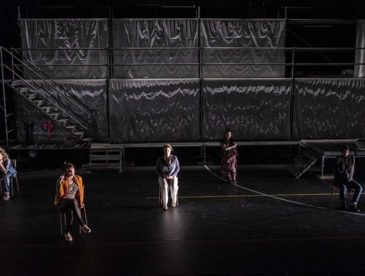 Ainsi est né Sœurs, un texte comme sait en écrire Rambert, en forme de coup de poing. Un style tranchant, une écriture comme un point de couture, qui revient sur elle-même pour mieux avancer, une inspiration aiguë. Des rampes d’une lumière froide et brutale éclairent le plateau occupé par des empilements de chaises… Soudain, Marina et Audrey (elles conservent leur prénom) déboulent face à face, en diagonale comme sur un ring, deux combattantes affûtées pour la bataille, prêtes à se mesurer, chacune chargée d’un passif lourd gorgé de griefs et de ressentiments accumulés depuis l’enfance.