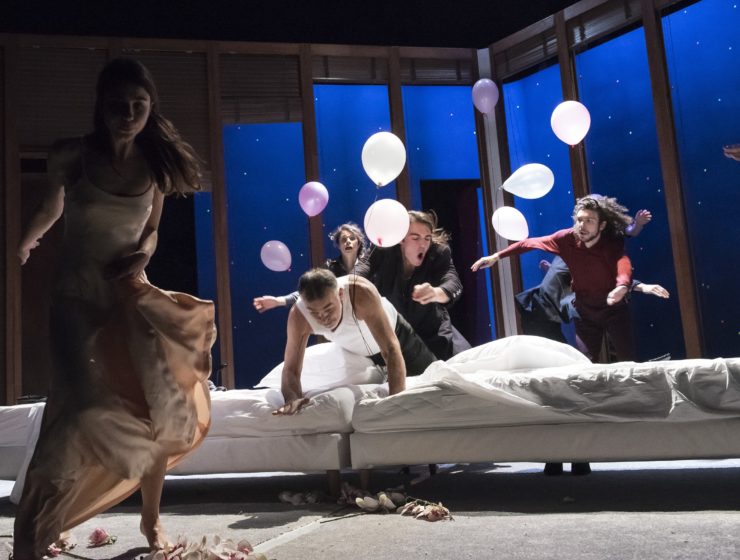 L’adaptation par Nicolas Briançon de la version scénique du roman réalisée par Giles Havergal est une réussite absolue. Il lui suffit de représenter le flanc d’un compartiment de train en carton-pâte, sur les fenêtres duquel s’afficheront, au fil des déplacements, des photos de paysages, de villes… Et le voyage peut commencer, sous la houlette de quatre fringants acteurs,