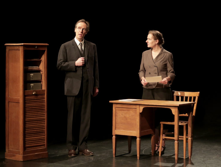 Pour donner à voir ces deux aspects de la vie de Kafka, les metteurs en scène à l’origine du projet, Sylvie Blotnikas et Julien Rochefort, ont entrecroisé douze récits écrits par Kafka (adaptés pour la première fois au théâtre par Sylvie Blotnikas) et des lettres adressées à son employeur. Classicisme du style, écriture précise, imagination, chimères, on retrouve dans la variété des récits, habités d’inquiétude et d’angoisses, les obsessions de l’écrivain.