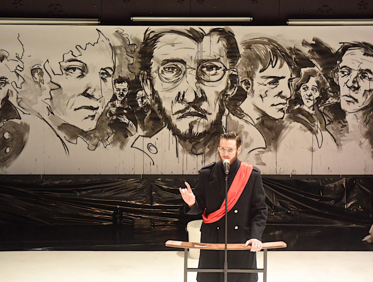 C’est une scène de L’Allemagne en automne, film collectif de 1977, à l’époque de la bande à Baader, rejouée ici, en rappel. Ce faisant, Falk Richter apostrophe l’Europe d’aujourd’hui, pointe les peurs, accuse les replis et dresse un état des lieux de nos démocraties, désolant. Son texte, écrit au jour le jour, en fonction de l’actualité, passe en revue Angela Merkel, « l’accueil » des réfugiés, les extrémismes, les violences commises à Cologne sur les femmes…