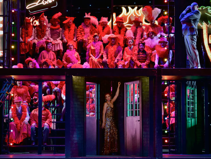 C’est à l’Opéra Comique que Manon a été créé, en 1884, et c’est là qu’est présentée la mise en scène d’Olivier Py, après Genève en 2016 et plus récemment, Bordeaux. Olivier Py a accentué sa mise en scène sur la prostitution et transformé l’auberge en maison de plaisirs, appuyant dès le début, la dimension érotique de Manon. La scénographie de Pierre-André Weitz dessine une boîte de cubes mobiles devenant tour à tour quartier, maison de rendez-vous, cabaret, église…