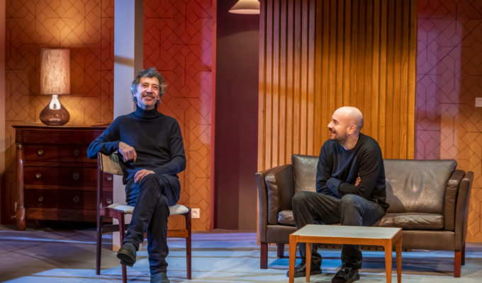 Ces revenants habitent le décor de Alban Ho Van, lieu de passage entre entrailles de maison des morts et lieu de drague souterrain. Les lumières de Dominique Bruguière ont la tonalité de tableaux de Hopper. Dans un recoin, une publicité du Club Med de l’époque affiche en lettres capitales, sur fond de mer et de ciel bleu : Rêver. Pas question de rêve ici, ou sinon fracassé, pour ces artistes atteints par le virus, qui vont connaître « le désespoir de savoir que l’on se quitte », être fauchés. L’hommage est puissant, l’émotion quitte rarement le plateau, traversée par quelques moments de folie, comme quand Marlène Saldana parodie une scène des Demoiselles de Rochefort, de drôlerie ou de tragique quand Guibert-Marina Foïs dit la mort de Michel Foucault. Guère de provocations, quelques complaisances, des petites facilités mais qui sont balayées par la mort qui rode et rend plus forts encore le désir, l’amour, la vie.