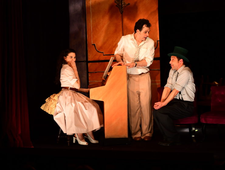 On est en 1948. Pour son ouverture, le Théâtre de la Huchette affiche une comédie musicale, Au diable vauvert. Les répétitions vont commencer. Pierre, metteur en scène, et sa femme Colette essayent de faire entrer le décor sur la scène.
